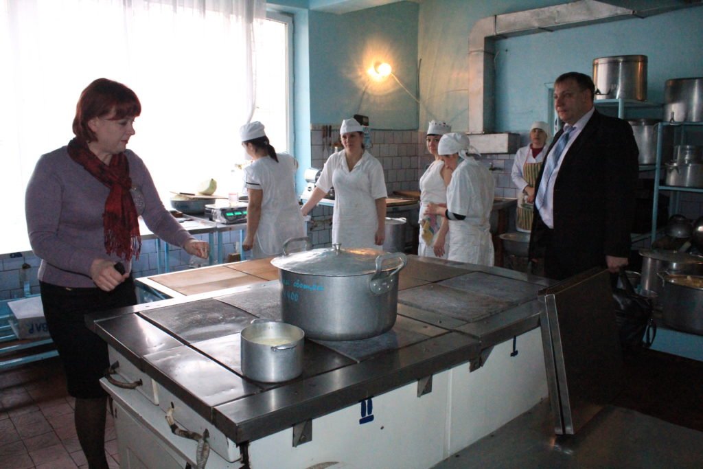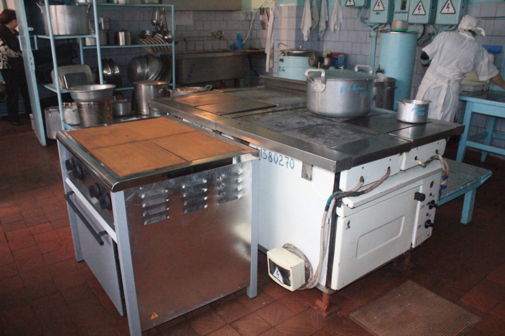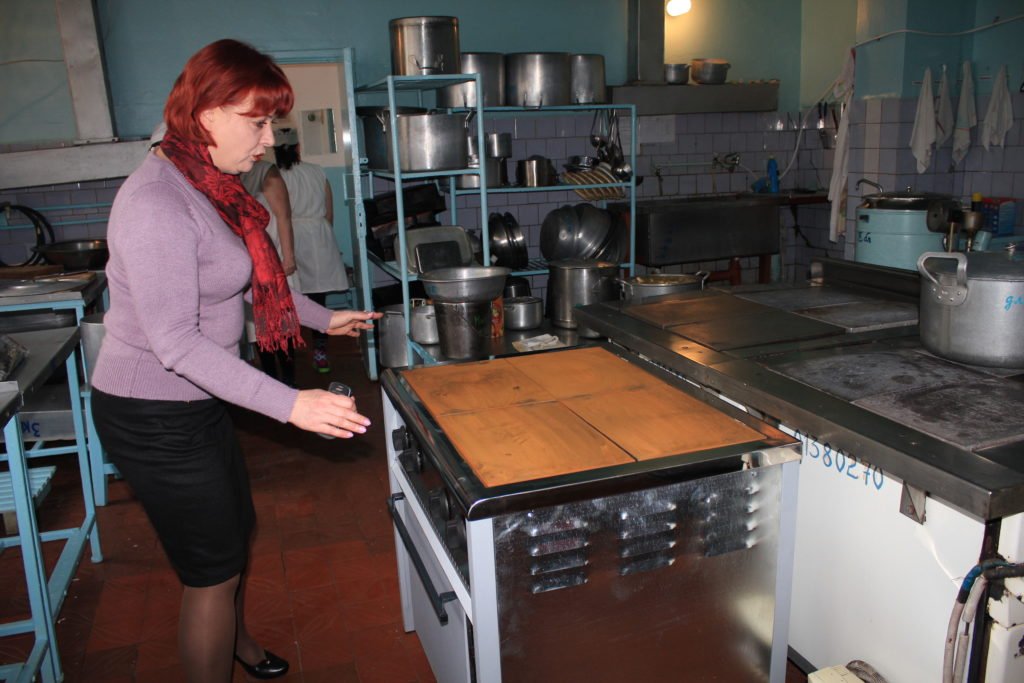 Пока заведующая показывает крайне необходимое оборудование, повара (их тут четыре) поддерживают руководство в оценке новой плиты:
